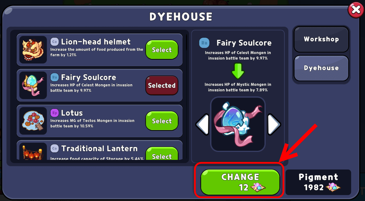 #### Step 5: Press on "Change" button and pay Pigment to dye